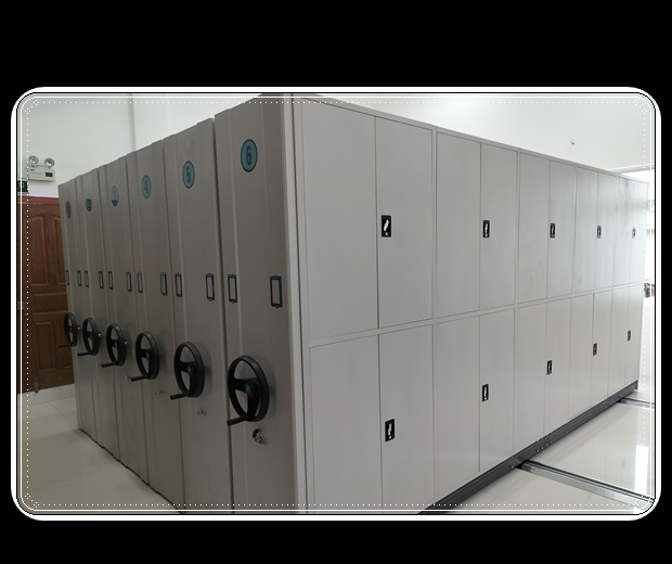 密集手搖移動書架是通過改造復柱式雙面固定柜,在其底座安裝軸輪,從而使之沿地面鋪設的小導軌直線移動,還可將多個柜子靠攏或分開,根據(jù)具體需要進行組裝組合,是一種可移動的密集型檔案裝具。