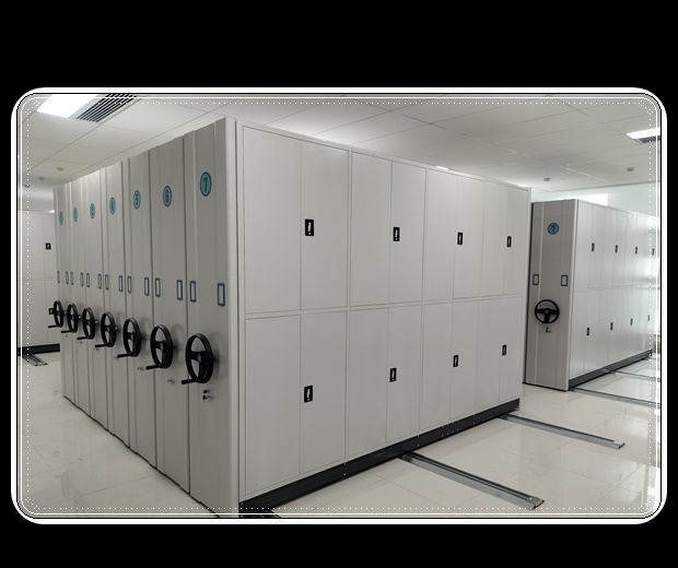 密集型檔案移動柜具有載量多,使用方便等特點,主要用于檔案資料、證券憑證等的存放。主要由軌道、柜體、底盤、面板、門板、目錄卡及傳動裝置、防倒裝置、密封裝置九部分組成: